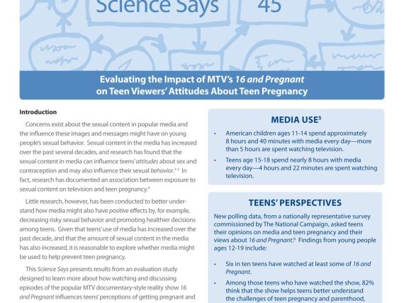 Examining the influence of MTV's 16 & Pregnant on teens' attitudes towards pregnancy.